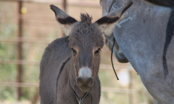 One of eight new burros — four jennies and their foals — shortly after the group’s recent arrival at RTF’s Lompoc, Calif., headquarters sanctuary. Photo by Liz Hines.