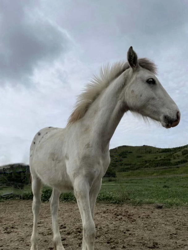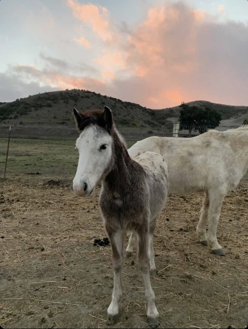 Talako was born into a very tight-nit band of horses. His grandmother, Ricochet’s Doll, is an intelligent grey elder mare who is fiercely protective of her offspring. Since his birth in September, Talako has learned the daily routine of his grandmother & mother and usually spends his days side-by-side grazing or getting a nice groom from his mother.