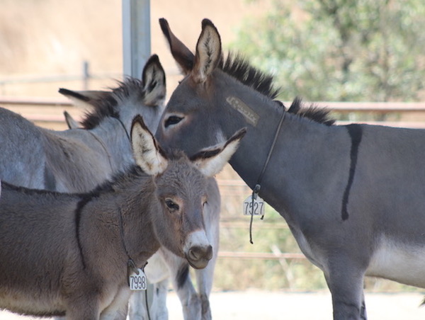 Two of eight burros recently welcomed to RTF’s American Wild Horse Sanctuary. The four adults and their foals, all jennies, are from a region of California that has seen a series of fatal burro shootings. Photo by Liz Hines.